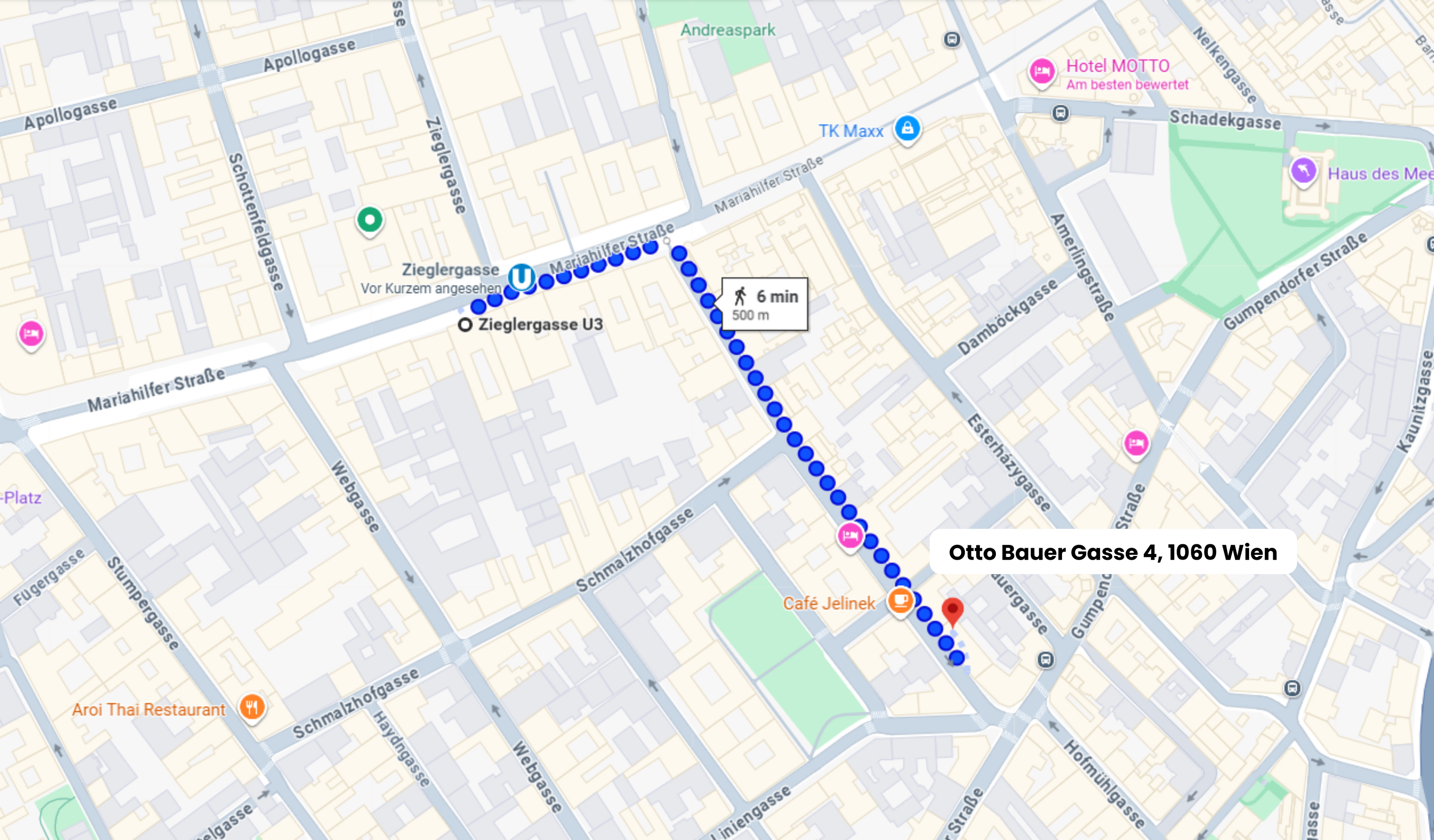 Meine Praxis für Psychotherapie in Wien befindet sich in der Otto-Bauer-Gasse 4 im 6. Bezirk (Mariahilf), im ruhigen Hochparterre und gut erreichbar von der Mariahilfer Straße sowie den U-Bahn-Linien U3 und U4.
